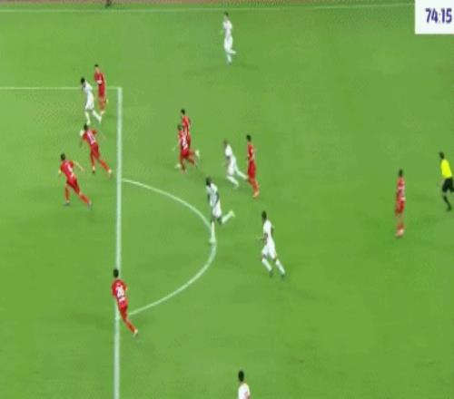 第74分钟,韦林顿分球,宋文杰禁区右肋横传,小禁区无人盯防的兰克尔泽近距离挑射偏出,错失破门良机。