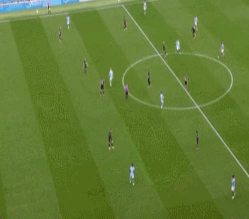 就像下面的动图所示,哈兰德在断球之后快速向前起速,队友传球是有失误的,但哈兰德还是成功拿到皮球。