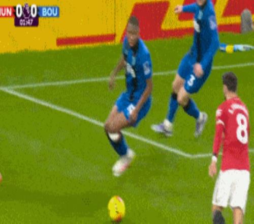 第77分钟,B费任意球世界波破门,曼联3-3扳平伯恩茅斯。