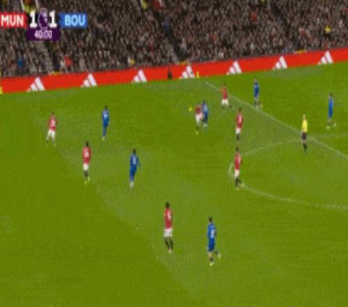 第40分钟,卢克-肖后场左路被断球,伯恩茅斯就地反击,塞梅尼奥推进小角度推射远角入网,伯恩茅斯将比分扳成1-1。