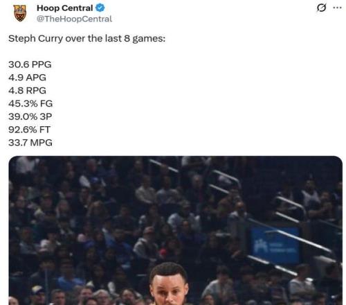 这也是库里进入12月以来好状态的缩影,过去8场比赛库里场均可以拿下30.6分4.8板4.9助,三项命中率为45.3%、39%、92.6%。