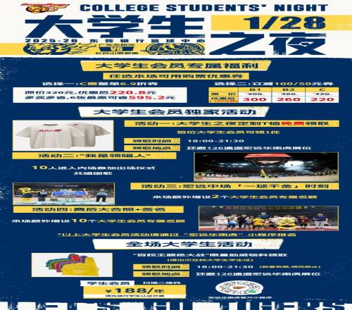 春节前,球队仅剩最后2个主场比赛:1月28日对阵吉林、2月3日对阵上海,都将有丰富的“主题之夜”活动!欢迎球迷朋友们共赴现场!