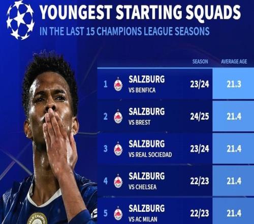 平均21.6岁,切尔西对贾府首发为欧冠近15个赛季第8年轻